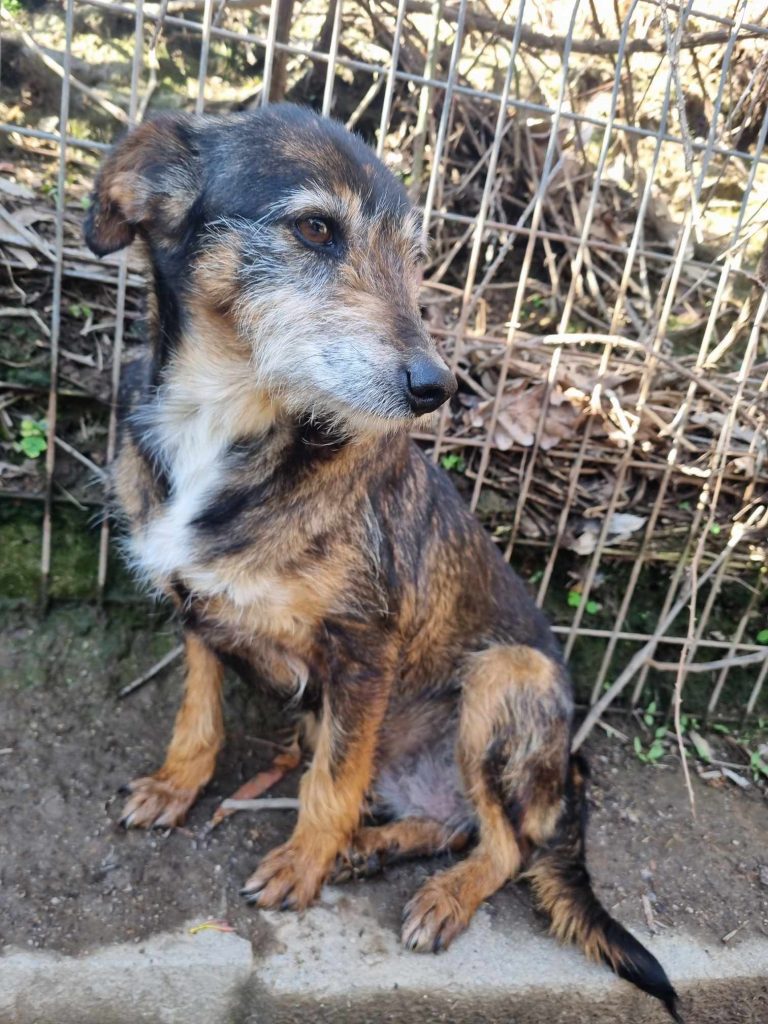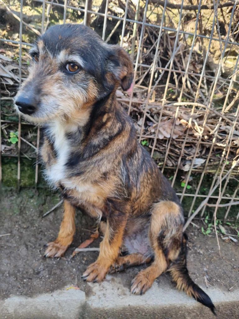 Amora ist eine liebe und soziale Hündin mit einer Schulterhöhe von ca. 40 cm. Sie zeigt sich im Umgang mit anderen Hunden verträglich.