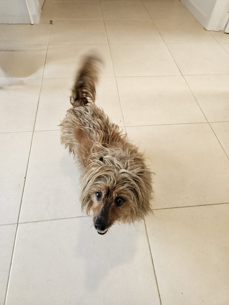 Dama’s Besitzer ist verstorben und niemand von den Familienangehörigen wollte sie aufnehmen; somit ist sie bei uns gelandet.