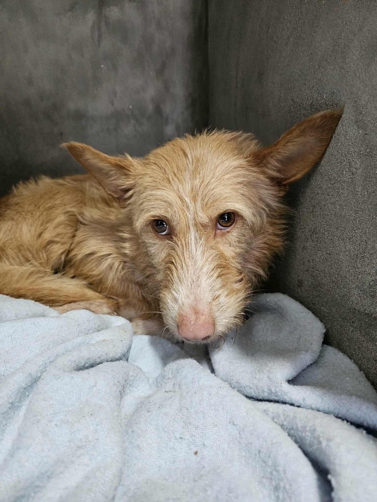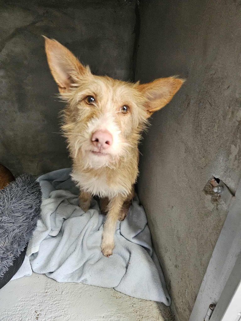 Vor ein paar Tagen wurde diese sanfte Podenco-Hündin mit einer Lebendfalle gesichert. Nun ist sie im Tierheim in Sicherheit und darf erst einmal zur Ruhe kommen. Polly ist noch unsicher, zeigt sich dabei aber unglaublich lieb. Sie lässt sich anfassen und genießt Streicheleinheiten sehr, ein zartes Seelchen, das einfach nur ankommen möchte. Mit Artgenossen ist sie verträglich. Für Polly wünschen wir uns ein geduldiges Zuhause mit viel Verständnis, Liebe und Zeit, damit sie Schritt für Schritt Vertrauen fassen und in Ruhe ihr neues Leben beginnen darf.